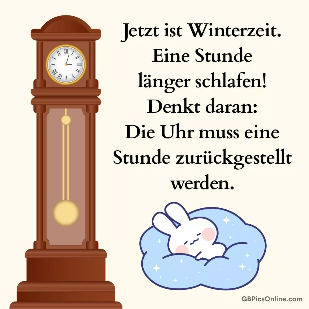 Jetzt ist Winterzeit. Eine... Jetzt ist Winterzeit. Eine Stunde länger schlafen! Denkt daran: Die Uhr muss eine Stunde zurückgestellt werden. Link: Code für Blogs: Code für Forum: Winterzeit Bilder