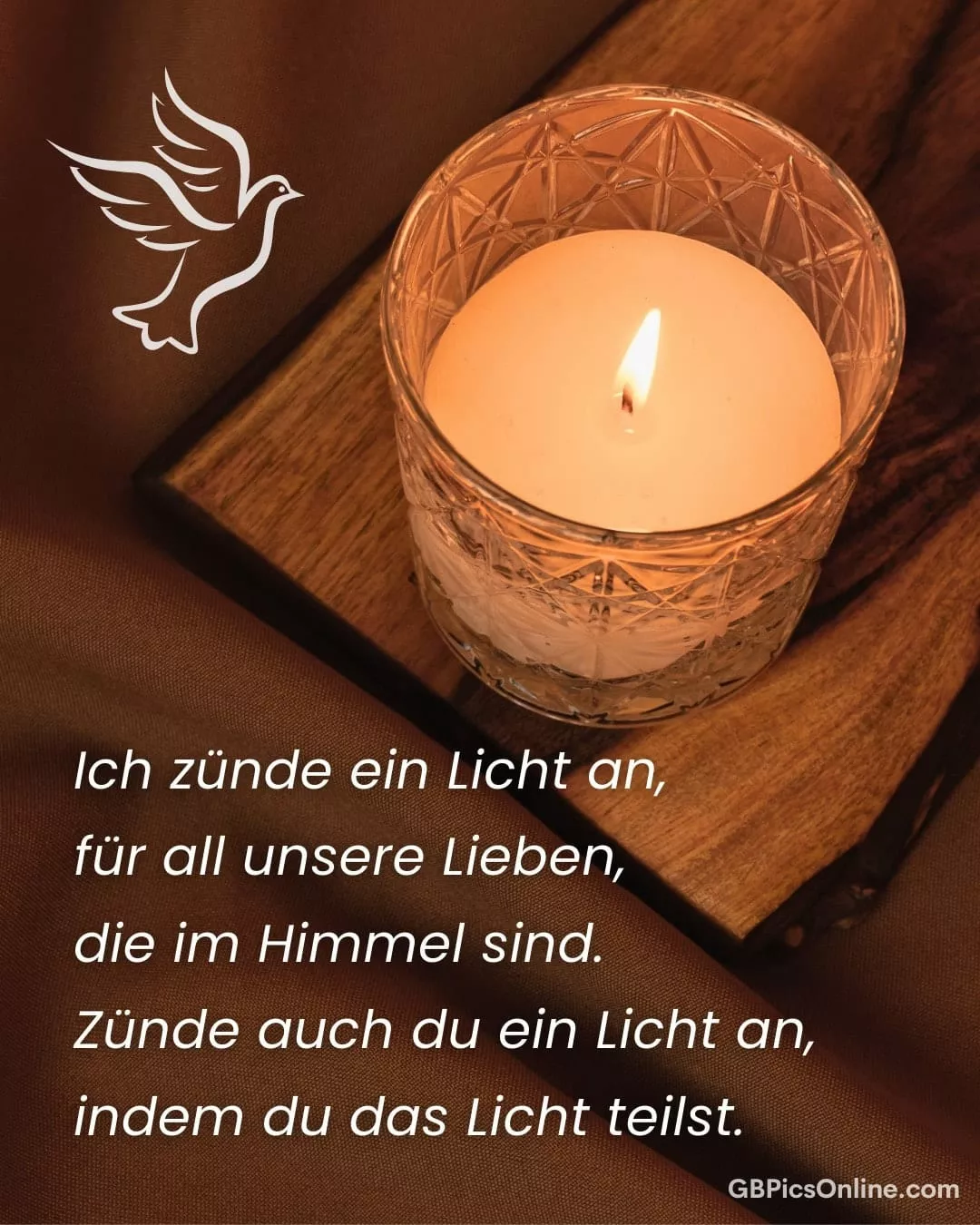 Ein warmes Licht in... Ich zünde ein Licht an, für all unsere Lieben, die im Himmel sind. Zünde auch du ein Licht an, indem du das Licht teilst. Link: Code für Blogs: Code für Forum: Totensonntag Bilder