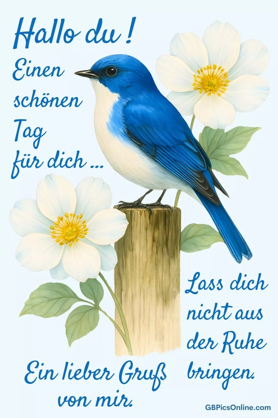 Hallo du! Einen schönen... Hallo du! Einen schönen Tag für dich ... Lass dich nicht aus der Ruhe bringen. Ein lieber Gruß von mir. Link: Code für Blogs: Code für Forum: Schönen Tag Bilder