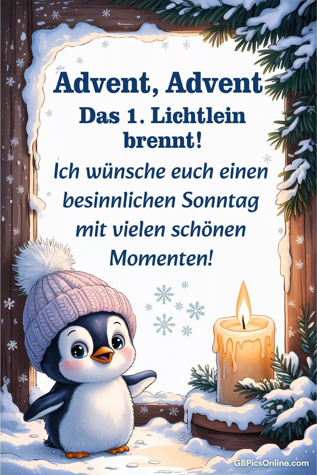 Advent, Advent das 1... Advent, Advent das 1. Lichtlein brennt! Ich wünsche euch einen besinnlichen Sonntag mit vielen schönen Momenten! Link: Code für Blogs: Code für Forum: 1. Advent Bilder