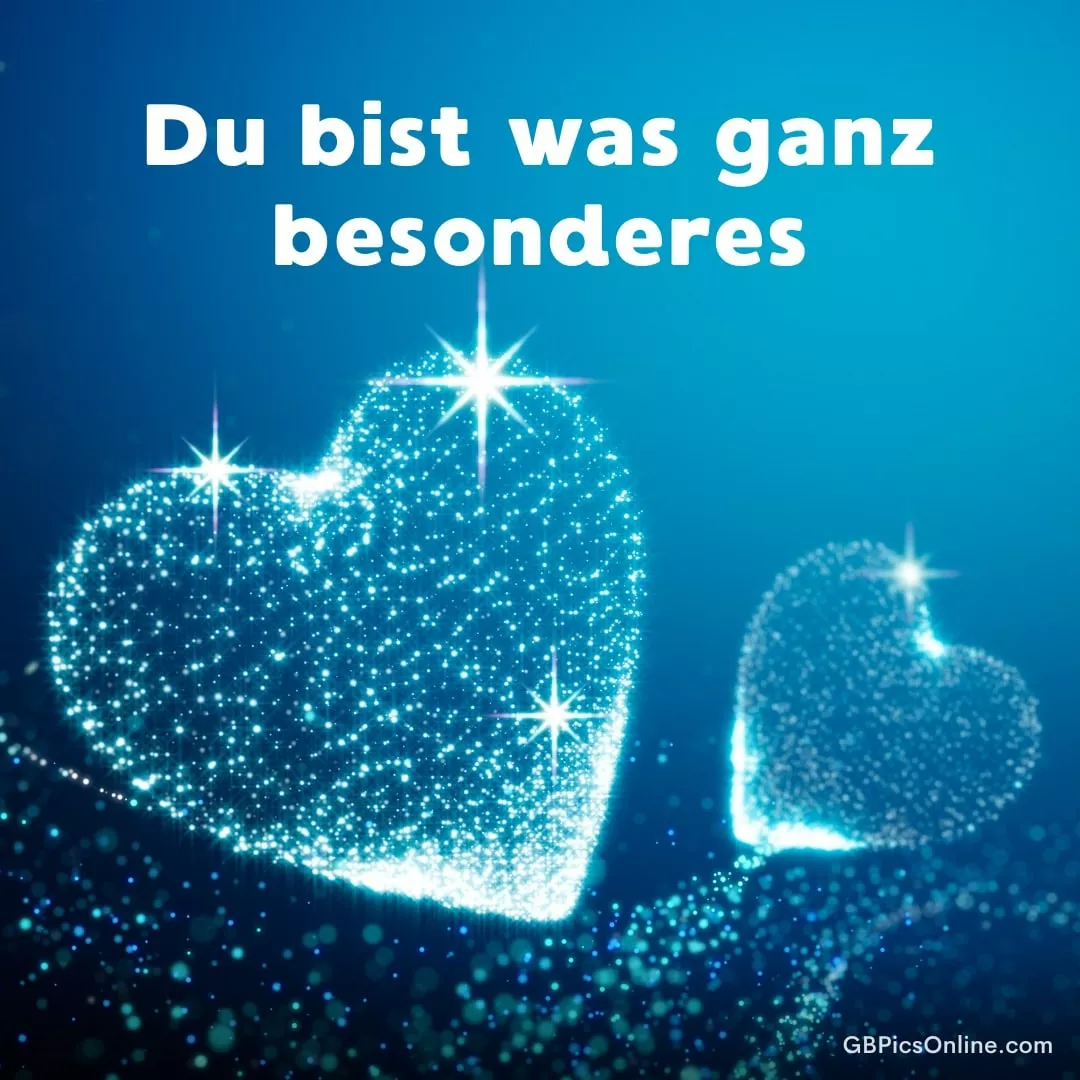 Zwei funkelnde Herzen in... Zwei funkelnde Herzen in Blau strahlen wie Sternenstaub und wirken zart, romantisch und magisch. Link: Code für Blogs: Code für Forum: Du bist was Besonderes! Bilder
