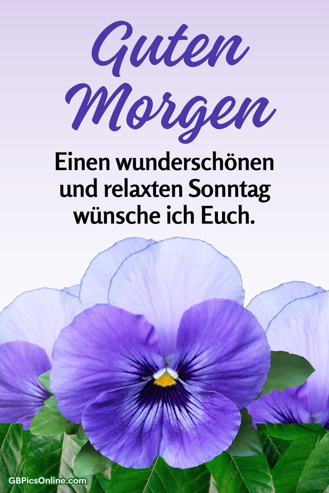 Zarte violette Stiefmütterc... Guten Morgen. Einen wunderschönen und relaxten Sonntag wünsche ich Euch. Link: Code für Blogs: Code für Forum: Sonntag Bilder