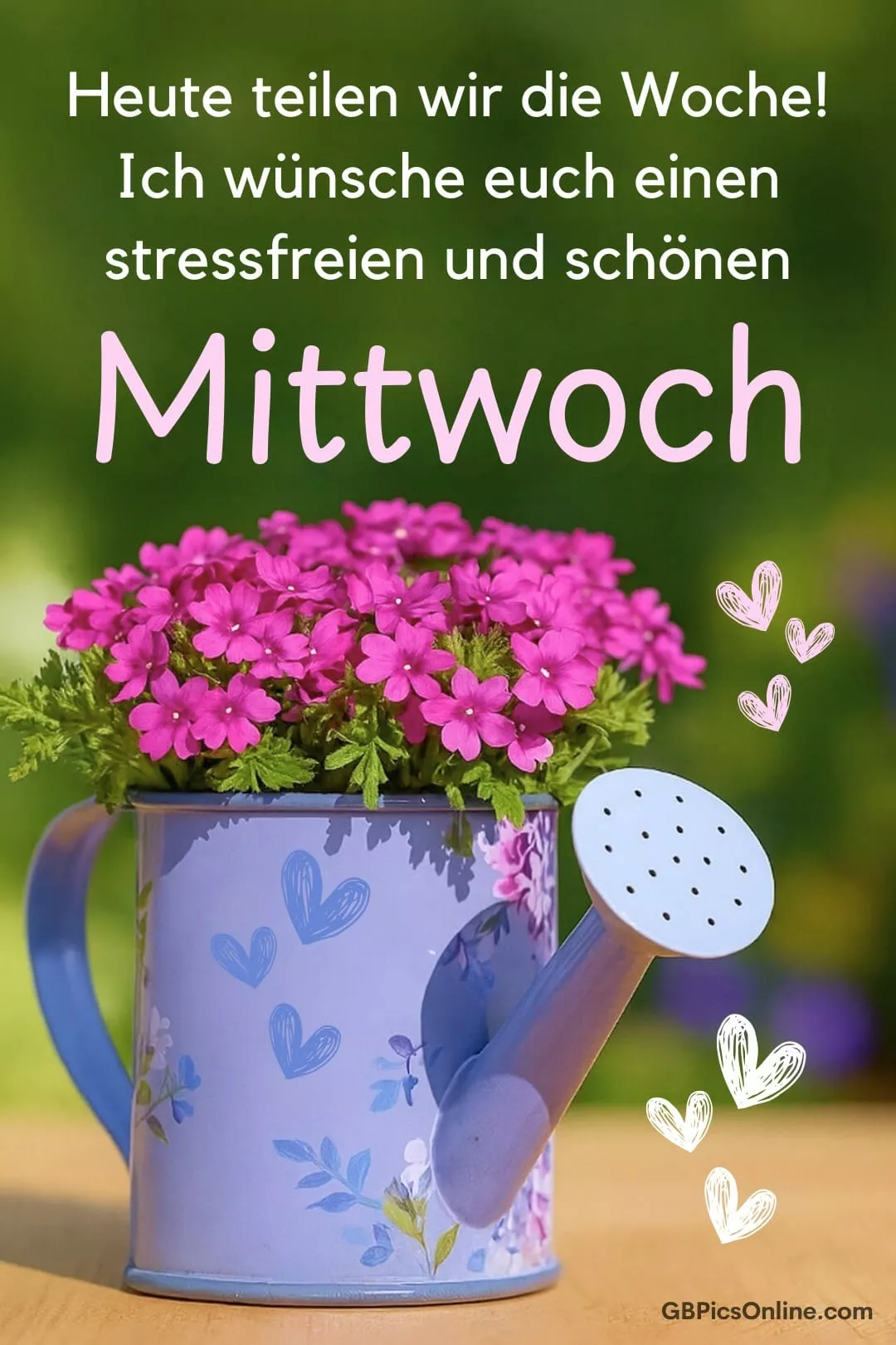 Heute teilen wir die... Heute teilen wir die Woche! Ich wünsche euch einen stressfreien und schönen Mittwoch. Link: Code für Blogs: Code für Forum: Mittwoch Bilder