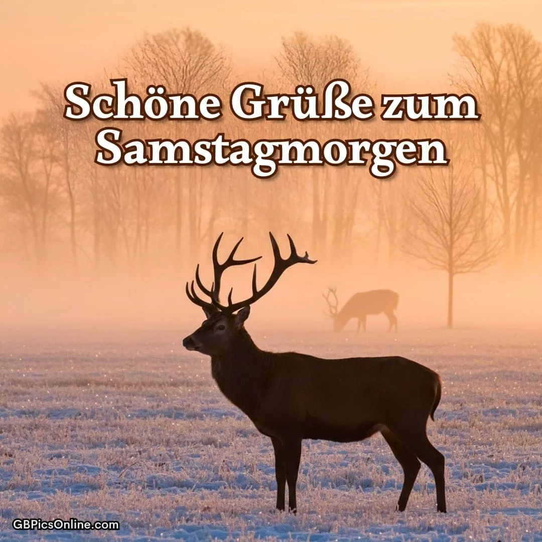 Ein majestätischer Hirsch... Ein majestätischer Hirsch steht im goldenen Morgennebel, während frostiges Gras und stille Bäume glitzern. Schöne Grüße zum Samstagmorgen. Link: Code für Blogs: Code für Forum: Samstag Bilder