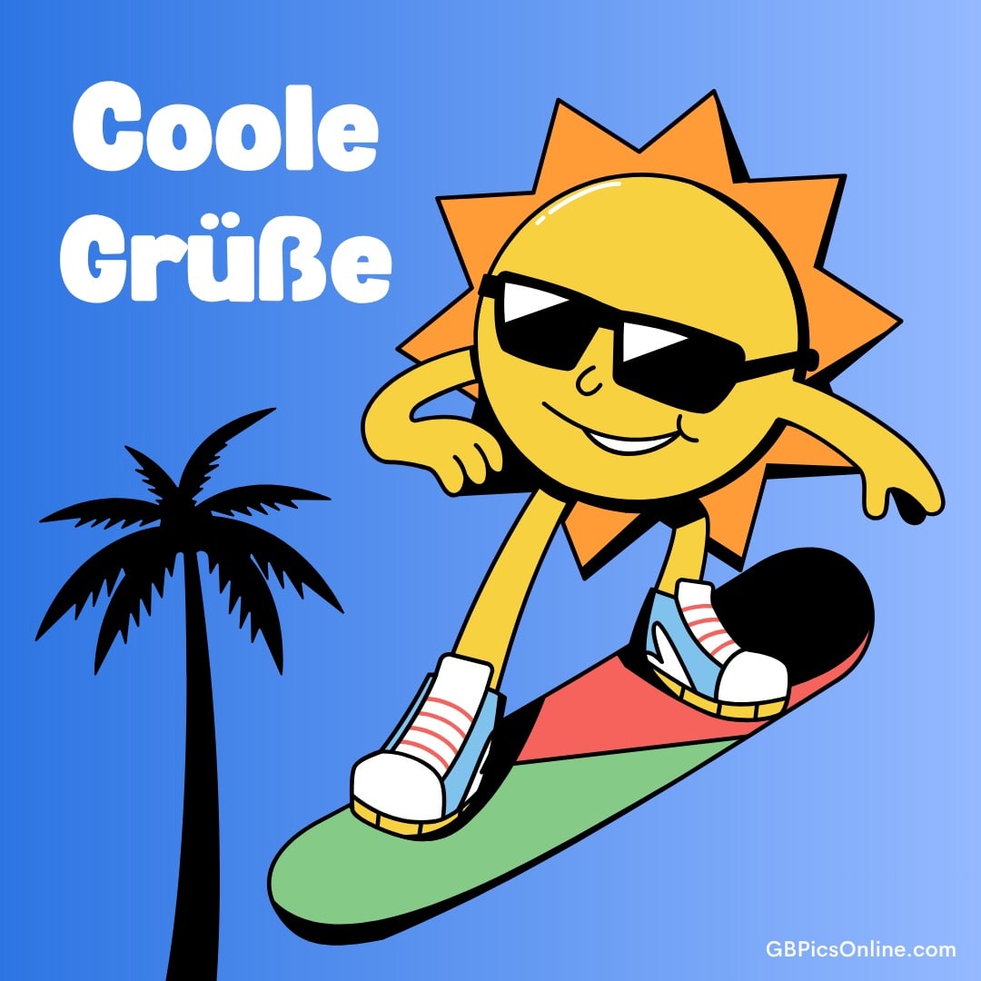 Eine lässige Sonne mit... Eine lässige Sonne mit Sonnenbrille surft über den Himmel und winkt sommerlich. Coole Grüße. Link: Code für Blogs: Code für Forum: Sonstige Grüße Bilder