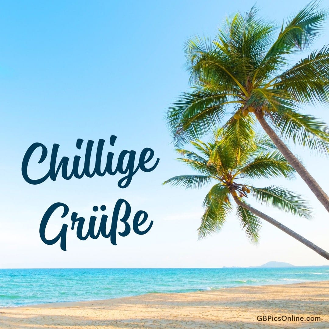 Palmen neigen sich über... Palmen neigen sich über einen sonnigen Strand mit türkisfarbenem Meer und klar blauem Himmel. Chillige Grüße. Link: Code für Blogs: Code für Forum: Sonstige Grüße Bilder