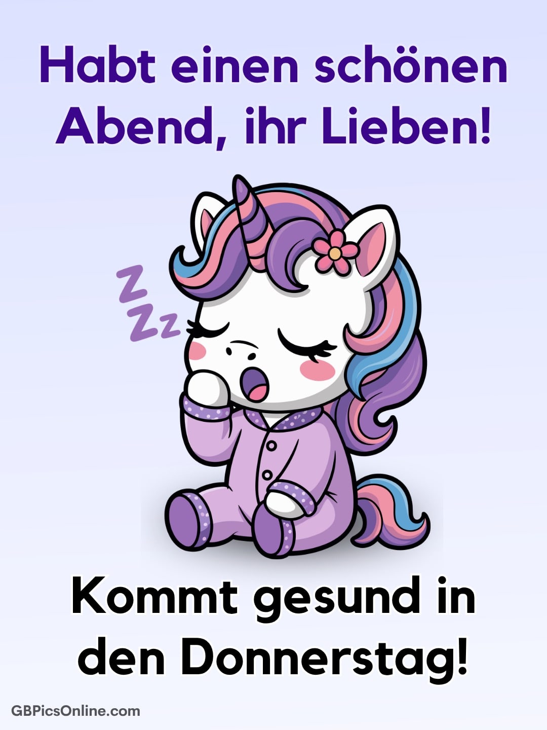 Ein müdes Einhorn im... Ein müdes Einhorn im Schlafanzug gähnt sich sanft in die Nacht und träumt schon von morgen. Habt einen schönen Abend, ihr Lieben! Kommt gesund in den Donnerstag! Link: Code für Blogs: Code für Forum: Mittwochabend Bilder