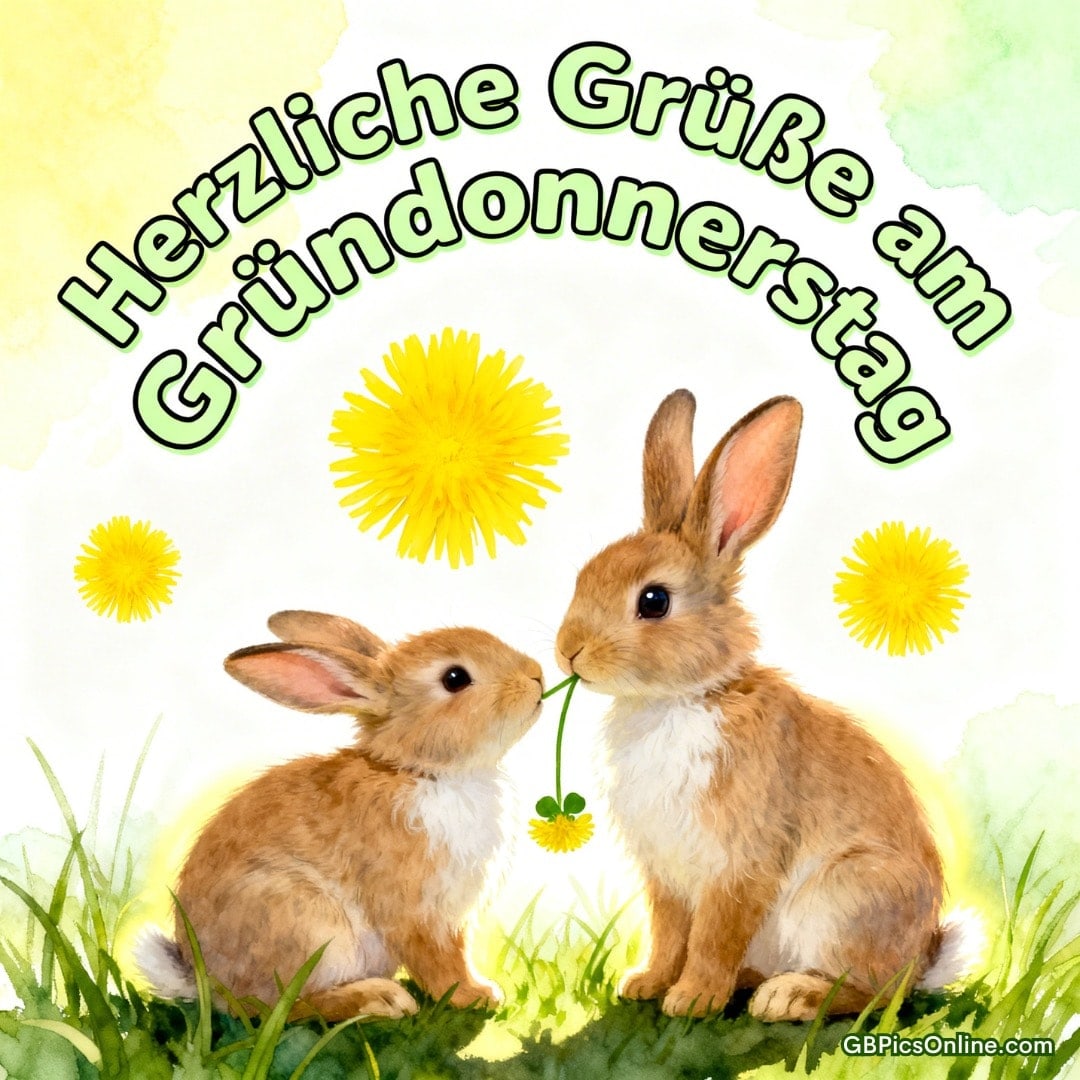 Zwei flauschige Kaninchen... Zwei flauschige Kaninchen teilen zärtlich eine Löwenzahnblüte im sanften Aquarellglanz. Herzliche Grüße am Gründonnerstag. Link: Code für Blogs: Code für Forum: Gründonnerstag Bilder