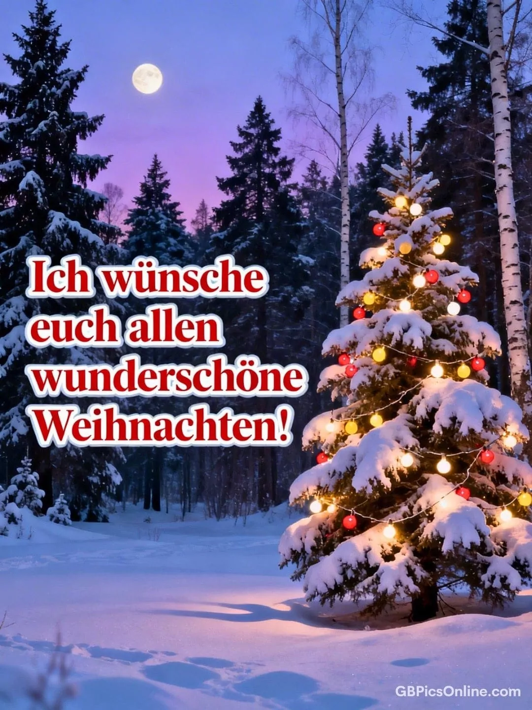 Unter dem Vollmond glitzert... Unter dem Vollmond glitzert der Schnee, während ein Lichterbaum den stillen Winterwald wärmt. Ich wünsche euch allen wunderschöne Weihnachten! Link: Code für Blogs: Code für Forum: Frohe Weihnachten Bilder