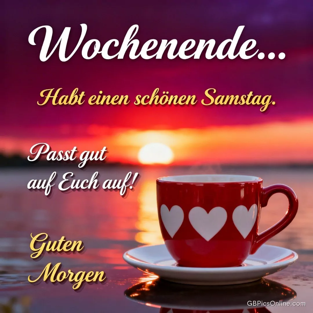 Wochenende... Habt einen... Wochenende... Habt einen schönen Samstag. Passt gut auf euch auf! Guten Morgen. Link: Code für Blogs: Code für Forum: Samstag Bilder